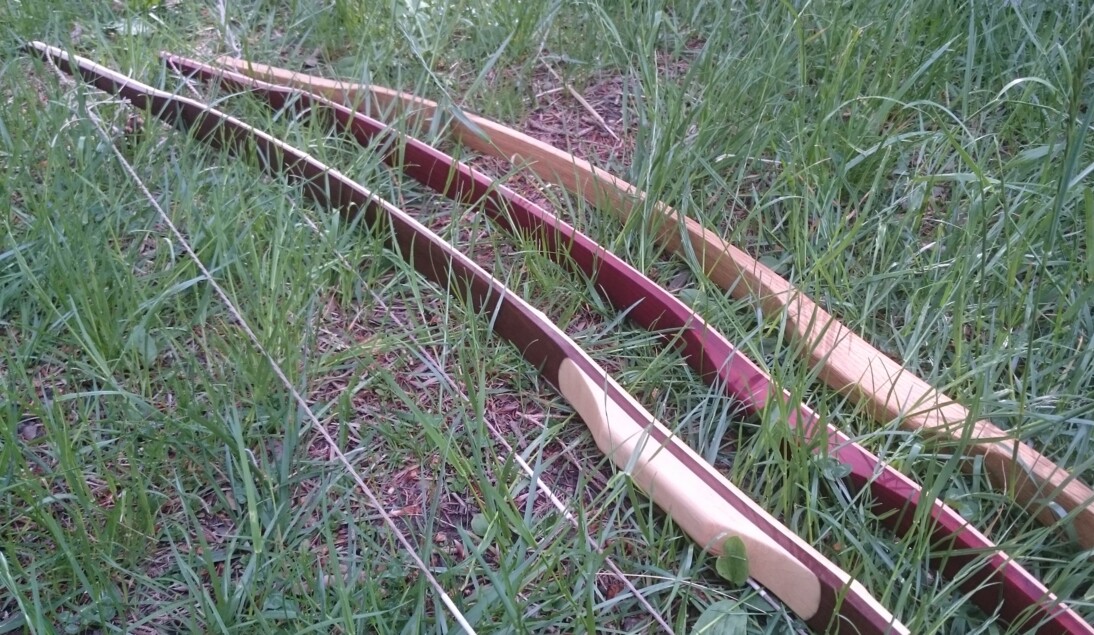 Jeder Kursteilnehmer sucht sich einen Rohling aus. Bogenbau-Beginner suchen sich einen Rohling mit Hickory- oder Bambus-Backing aus. Für fortgeschrittene Teilnehmer stehen auch Staves, Spaltlinge zur Verfügung mit oder ohne freigelegten Jahresring. Bei konkreten Wünschen bitte spätestens 6 Wochen vor dem Kurs telefonisch melden. Die Rohlinge in diesem Kurs können auch absichtlich oder von Natur aus mit einem Deflex oder Reflexen versehen sein, Vorspannungen die Geschwindigkeit und Komfort gestalten. Im diesem Kurs ist das Erlebnis Holzbogen bauen intensiver. Es ist mehr Zeit, um über verschiedene Bogen-Designs zu informieren. Es besteht eine größere Auswahl an Rohlingen. Es besteht mehr Zeit für „die schönen Dinge“. Im 2- Tage-Kurs ist es auch leichter das Maximalziel zu erreichen – ein Bogen mit sauberen Tiller und ästhetischem Finish.