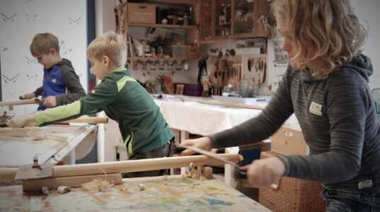 Der Kinder-Kurs dauert einen Tag, beginnt um 9 und endet um 17 Uhr. Anhand von naturgegebenen Beispielen machen sich die Kinder vertrauter mit dem Prinzip eines Bogens. Sie lernen Werkzeuge wie Zugeisen, Hobel, Raspel und Feile kennen und arbeiten damit. Im Fokus steht es, das Material so zu bearbeiten, dass er sich gleichmässig biegt. Im Kurs wird auch geübt, einen Bogen auf- und ab zu spannen, und einen Bogenbauerknoten zu binden.