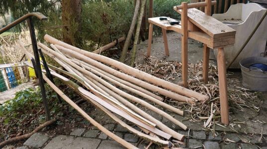 Beginner erhalten im Kinderkurs einen Manau-Rohling (Rattan). Kinder die schon einen Bogen aus Hasel oder ähnliches geschnitzt haben und diesen Bogen mitbringen, können auch einen Hasel-, Hartriegel- oder Holunder-Rohling gegen Aufpreis erhalten (zzgl. 15-25.- €). Diesen Rohlingen ist ein Jahresring freigelegt worden und sie sind ca. 12 Monate gelagert. Sie sind schwerer zu bearbeiten. Manau kann nachträglich noch mit Recurves versehen werden und verzeiht mehr Fehler beim Bau. Beim Bogenbauen müssen wir die Natur nachmachen, indem wir es wie ein Grashalm, ein Ast oder Baum machen, die sich im Wind auch biegen ohne zu brechen.